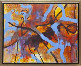<span class='ref_item'>67 -</span> <span class="object_title">ABSTRACCIÓN DE COLORES</span>   <p><span class="author">SARA YOHUATE (Madrid, 1974)  </span> <br><span class="technique_material">Óleo sobre lienzo</span><br><span class="technical_description">Abstracción realizada en colores azul y naranja, formada por líneas que dejan ver unos ojos. Dedicado y firmado en el reverso. Enmarcado en madera dorada.<br/>Medidas marco: 74x90cm</span><br></p>