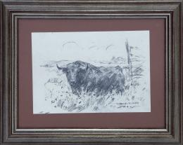 <span class='ref_item'>64 -</span> <span class="object_title">"TORO EN EL CAMPO"</span>   <p><span class="author">JUAN REUS (España, 1912-2003)</span> <br><span class="technique_material">Carboncillo sobre papel</span><br><span class="technical_description">Dibujo que muestra un toro en posición relajada, con titulo y firma del autor en el ángulo inferior derecho.<br/>Enmarcado en madera parcialmente plateada y cristal.<br/>Medidas marco: 37x45cm</span><br></p>