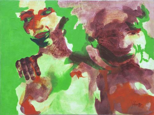 <span class='ref_item'>78 -</span> <span class="object_title">PAREJA</span>   <p><span class="author">SARA YOHUATE (Madrid, 1974)  </span> <br><span class="technique_material">Técnica mixta sobre lienzo</span><br><span class="technical_description">Muestra dos rostros con una composicón formada por grandes manchas de color. Firmado zona inferior derecha y titulado y firmado en el reverso del lienzo.<br/>Medidas: 54x72,5cm</span><br></p>