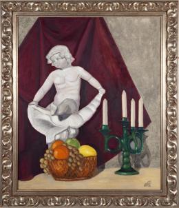 <span class='ref_item'>88 -</span> <span class="object_title">BODEGÓN CON ESCULTURA, FRUTAS Y CANDELABRO, 1991</span>   <p><span class="author">FERNANDO F. (S.XX) </span> <br><span class="technique_material">Óleo sobre lienzo</span><br><span class="technical_description">Firmado y fechado en 1991 en el ángulo inferior derecho. Firmado por el reverso. <br/>Marco de madera tallada y plateada. <br/>Medidas: 94,5 x 79,5cm con marco. 80 x 65cm sin marco</span><br></p>