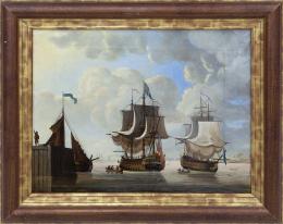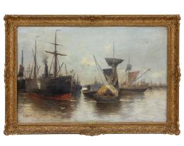 <span class='ref_item'>95 -</span> <span class="object_title">"GALEONES"</span>   <p><span class="author">ATRIBUIDO A JOHN M. HORTON (Canadá, 1935)</span> <br><span class="technique_material">Óleo sobre lienzo</span><br><span class="technical_description">Composición formada por dos galeones y varios botes aparentemente entrando a puerto.<br/>Pequeño desperfecto en el lienzo y ligeras marcas de craquelado en la pintura.<br/>Enmarcado en un marco de madera de color marrón y dorado. Medidas marco: 53cm x 63cm. Medidas lienzo: 42.5cm x 50cm</span><br></p>