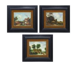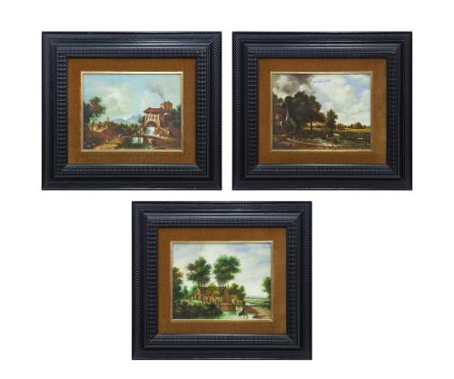 <span class='ref_item'>102 -</span> <span class="object_title">"PAISAJES"</span>   <p><span class="author">JOSE MARIA SAMPAIO SABARRET</span> <br><span class="technique_material">Óleo sobre tablex</span><br><span class="technical_description">Lote compuesto por tres paisajes: <br/>- El 1º representa un paisaje con un molino sobre un río con un puente y un caballo atravesando el mismo.<br/>- El 2º representa un paisaje de casas de la época bañadas por el río con un puente para el acceso a estas.<br/>- El 3º representa el paisaje de una laguna siendo atravesada por un carro camino de casa.<br/>Todos firmados en el ángulo inferior derecho SABARRET por el autor y enmarcados con paspartú en madera negra trabajada. Medidas marcos: 47cm x 54cm</span><br></p>