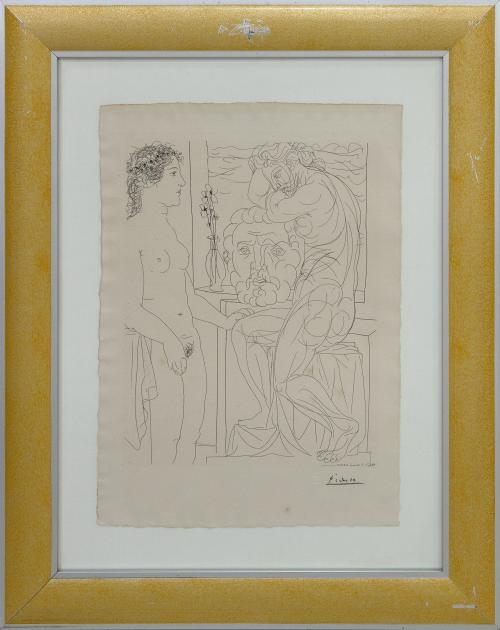 <span class='ref_item'>89 -</span> <span class="description">LITOGRAFÍA "SUITE VOLLARD II" FIRMADO EN PLANCHA POR PICASSO (1990) </span>  <p><span class="description">PABLO PICASSO ( Málaga, 1881-Mougins, Francia, 1973) <br>Editada por el Museo municipal de Mülheim an der Ruhr (Alemania) y distribuida por Inter Art Resources LTD entre 1990 y 1992. Edición 169/300. <br>Con firma en plancha de Picasso y sello en seco de imprenta Plitt. <br>Enmarcado en madera con cristal. <br>Acompaña certificado de autenticidad de serie.<br>Medidas: 66x53cm</span></p>