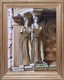 <span class='ref_item'>120 -</span> <span class="object_title">LAS CARIÁTIDES, 2002</span>   <p><span class="author">JORGE GUANCHE (La Habana, 1960)</span> <br><span class="technique_material">Óleo sobre lienzo</span><br><span class="technical_description">Firmado y fechado en el ángulo inferior derecho año 2002. Al dorso firmado, fechado y titulado.<br/>Enmarcado<br/>Medidas: 80 x 60cm sin marco</span><br></p>