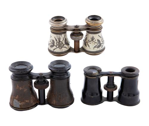 <span class='ref_item'>171 -</span> <span class="object_title">LOTE DE TRES PRISMÁTICOS DEL SIGLO XIX-XX</span>   <p><span class="technical_description">1º Prismático de Le Jockey Club Paris. Fabricado en latón esmaltado y piel de color negro. Medidas: 8 X 11.5 cm.<br/> <br/>2º Prismático de teatro. Fabricado en latón esmaltado y oculares de baquelita. Falta uno de los oculares. Medidas: 6.5 X 10.5 cm.<br/> <br/>3º Prismático de teatro. Fabricado en latón esmaltado con motivos vegetales. . Medidas: 6.5 X 10 cm.</span><br></p>