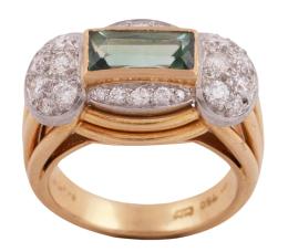<span class='ref_item'>195 -</span> <span class="object_title">SORTIJA EN ORO 18KT, TURMALINA Y DIAMANTES</span>  <p><span class="technical_description">Sortija realizada en oro de 18kt. Con turmalina central en talla rectangular con peso aprox 0.75ct, rodeada de diamantes en talla brillante con peso total aprox 0.25ct.<br/>Medida Sortija: 9<br/>RefC 11340</span><br>Peso: <span class="PESO_HCES1">9,50</span> <span class="PESOUMED_HCES1">gr.</span><br></p>