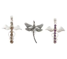 <span class='ref_item'>196 -</span> <span class="object_title">TRES COLGANTES EN PLATA DE LEY 925 MM Y CUARZOS</span>  <p><span class="technical_description">Lote compuesto por tres colgantes realizados en plata de ley 925mm. Dos de ellos en tallas redondas; uno con cuarzos citrinos y el otro con cuarzos color amatista. El tercero en forma de libélula.<br/> </span><br>Peso: <span class="PESO_HCES1">26,70</span> <span class="PESOUMED_HCES1">gr.</span><br></p>
