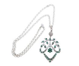 <span class='ref_item'>208 -</span> <span class="object_title">COLGANTE CON CADENA EN PLATA DE LEY Y ESMERALDAS</span>  <p><span class="technical_description">Colgante con cadena realizados en plata de ley. Colgante con motivo vegetal adornado con esmeraldas en talla redonda y peso total aprox (1.10ct). Cadena de eslabón rolo y cierre mosquetón.<br/>Longitud: 50cm</span><br>Peso: <span class="PESO_HCES1">25,70</span> <span class="PESOUMED_HCES1">gr.</span><br></p>