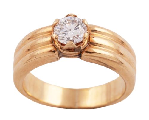 <span class='ref_item'>205 -</span> <span class="object_title">SOLITARIO EN ORO DE 18 KT. CON DIAMANTE</span>  <p><span class="technical_description">Solitario realizado en oro de 18 kt. de diseño gallonado y un diamante central en talla brillante con peso aprox (0.50 ct). Estimación de color: H, estimación de pureza: VS<br/>Medida sortija: 11<br/>Ref: 75R545</span><br>Peso: <span class="PESO_HCES1">6,6</span> <span class="PESOUMED_HCES1">gr.</span><br></p>