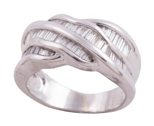 <span class='ref_item'>191 -</span> <span class="object_title">SORTIJA EN PLATINO Y DIAMANTES</span>  <p><span class="technical_description">Sortija realizada en platino , formada por carriles ondulados con diamantes en talla trapecio y peso total aprox (1 ct)<br/>Medida sortija: 12<br/>Ref: 82R2388</span><br>Peso: <span class="PESO_HCES1">12,3</span> <span class="PESOUMED_HCES1">gr.</span><br></p>