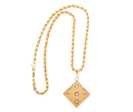 <span class='ref_item'>62 -</span> <span class="object_title">COLGANTE ANTIGUO Y CORDÓN EN ORO DE 18 KT Y DIAMANTES</span>  <p><span class="technical_description">Colgante antiguo y cordón realizados en oro de 18 kt. El colgate adornado por tres diamantes en talla brillante antigua con peso total aprox (0.35 ct) y diseño cincelado con forma de estrella y detalles vegetales.<br/>El cordón con cierre mosquetón.<br/>Longitud: 48 cm</span><br>Peso: <span class="PESO_HCES1">25,60</span> <span class="PESOUMED_HCES1">gr.</span><br></p>