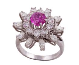 <span class='ref_item'>46 -</span> <span class="object_title">SORTIJA EN ORO DE 18 KT. RUBÍ Y DIAMANTES</span>  <p><span class="technical_description">Sortija realizada en oro de 18 kt. con diseño de gran roseta compuesta por un rubí central en talla redonda con peso aprox (1 ct) y orla y pétalos con diamantes en tallas brillante y marquise con peso total aprox (2 ct)<br/>Medida sortija: 11</span><br>Peso: <span class="PESO_HCES1">7,90</span> <span class="PESOUMED_HCES1">gr.</span><br></p>