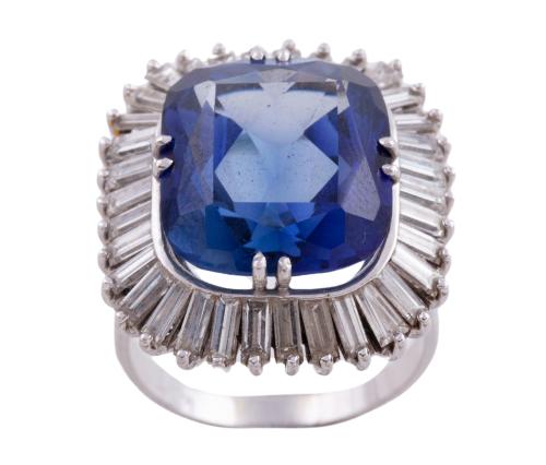 <span class='ref_item'>57 -</span> <span class="object_title">SORTIJA EN ORO DE 18 KT. CON GRAN ZAFIRO CENTRAL Y DIAMANTES</span>  <p><span class="technical_description">Sortija realizada en oro de 18 kt. con espectacular zafiro central de peso aprox (12 ct) y gran orla de diamantes en tallas baguette y trapecio con peso total aprox (2 ct)<br/>Medida sortija: 12</span><br>Peso: <span class="PESO_HCES1">11,60</span> <span class="PESOUMED_HCES1">gr.</span><br></p>