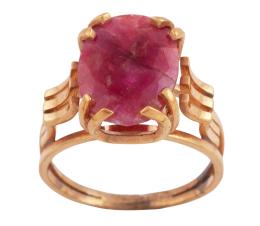 <span class='ref_item'>181 -</span> <span class="description">SORTIJA EN ORO 18KT Y RUBÍ</span>  <p><span class="description">Sortija realizada en oro de 18kt. Formado por dos aros y un rubí masivo central en talla oval con peso aprox 6.25ct. Presenta pequeña fisura en la piedra<br>Medida Sortija: 18<br>Peso: 6,10 gr.</span></p>