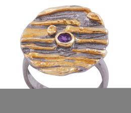 <span class='ref_item'>170 -</span> <span class="object_title">SORTIJA EN PLATA 925 CON CHAPADO EN ORO Y AMATISTA. JOYERÍA DE AUTOR, PIEZA ÚNICA</span>  <p><span class="technical_description">Sortija realizada en plata de ley 925 con contraste y partes chapadas en oro. Diseño circular estriado con una amatista en talla redonda de peso aprox 0.09ct<br/>Medida Sortija: 12 (regulable)</span><br>Peso: <span class="PESO_HCES1">6,40</span> <span class="PESOUMED_HCES1">gr.</span><br></p>