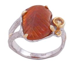 <span class='ref_item'>183 -</span> <span class="object_title">SORTIJA EN PLATA 925 CON CHAPADO EN ORO, ÓPALO, CITRINOS Y ZAFIRO. JOYERÍA DE AUTOR, PIEZA ÚNICA</span>  <p><span class="technical_description">Sortija realizada en plata de ley 925 con contraste y partes chapadas en oro. Ópalo tallado con forma de hoja, dos citrinos en talla redonda y pequeño zafiro fancy<br/>Medida Sortija: 11</span><br>Peso: <span class="PESO_HCES1">3,70</span> <span class="PESOUMED_HCES1">gr.</span><br></p>