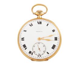 <span class='ref_item'>169 -</span> <span class="object_title">RELOJ LEPIN DE BOLSILLO  ZENITH  EN ORO DE 18 KT, SISTEMA REMONTOIR</span>  <p><span class="technical_description">Reloj lepin de bolsillo ZENITH en oro de 18 kt. <br/>Esfera de porcelana blanca con números romanos y segundero a las 6.<br/>Parte trasera decorada con motivos vegetales.<br/>Sistema remontoir. En estado de marcha.<br/>Ref: 0.35.1982<br/>Peso total: 68,80 gr</span><br></p>