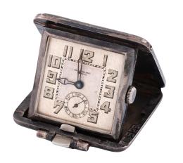 <span class='ref_item'>25 -</span> <span class="object_title">RELOJ VINTAGE SUIZO DE VIAJE PARA COLGAR O MESITA, HENRY BLANC 1929, EN PLATA DE LEY 925/00. CUERDA MANUAL</span>  <p><span class="technical_description">Reloj vintage suizo de viaje realizado en plata de ley. Firmado HENRI BLANC. GENEVE en tapas y esfera, Nº 78029. Esfera plateada con numeración arábiga, agujas pavonadas, segundero a las seis. Movimiento mecánico manual. La parte exterior con decoración estriada y el interior con la inscripción: "SADIE HARREL. 1929". En estado de marcha.<br/>Medidas: 4 x 3,5cm</span><br>Peso: <span class="PESO_HCES1">37,7</span> <span class="PESOUMED_HCES1">gr.</span><br></p>