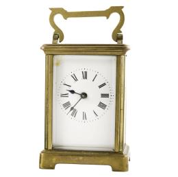 <span class='ref_item'>124 -</span> <span class="description">RELOJ DE CARRUAJE EN BRONCE DORADO. CUERDA CON LLAVE. FF S.XIX </span>  <p><span class="description">Realizado a finales del siglo XIX, despertador en bronce dorado con laterales y parte superior en cristal. Movimiento de cuerda. En estado de marcha<br>11x8x6 cm.</span></p>