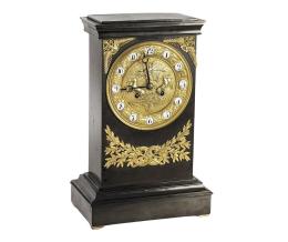 <span class='ref_item'>121 -</span> <span class="description">RELOJ ESTILO IMPERIO, DE BRONCE PAVONADO, 1823 </span>  <p><span class="description">Maquinaria París con sonería de campana a horas y medias. Firmado Pons. Se acompaña de dos llaves. Realizado en bronce pavonado. Con esfera en bronce cincelado con números árabes en óvalos de porcelana blanca. Medidas: 39 x 24 x 15 cm. <br>Requiere revisión.</span></p>