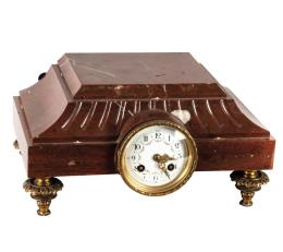 <span class='ref_item'>151 -</span> <span class="description">RELOJ TIPO PEANA FRANCÉS, DE MÁRMOL SERPENTINO ROJO, S.XIX </span>  <p><span class="description">Maquinaria París con sonería de campana a las horas y medias. Ocho días de cuerda. En mármol veteado rojo. Esfera de porcelana blanca con esmaltes de guirnaldas de flores y números árabes con agujas tipo Luis XV. Incluye dos llaves. En estado de marcha. Medidas: 17.5 x 31 x 19cm</span></p>
